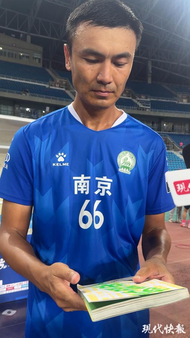 第9轮比赛,南京队2米高人戈伟替补登场连进两个头球,帮助南京逆转战胜盐城。本轮,戈伟首发登场并戴上了队长袖标,看到《苏超来了》,戈伟爱不释手,“这本书可以给我一本吗?哈哈。”南京队球员杨笑天也表示,自己很早就知道《苏超来了》这本书了,“今天终于拿到了,回去要和大家一起好好看一看。”